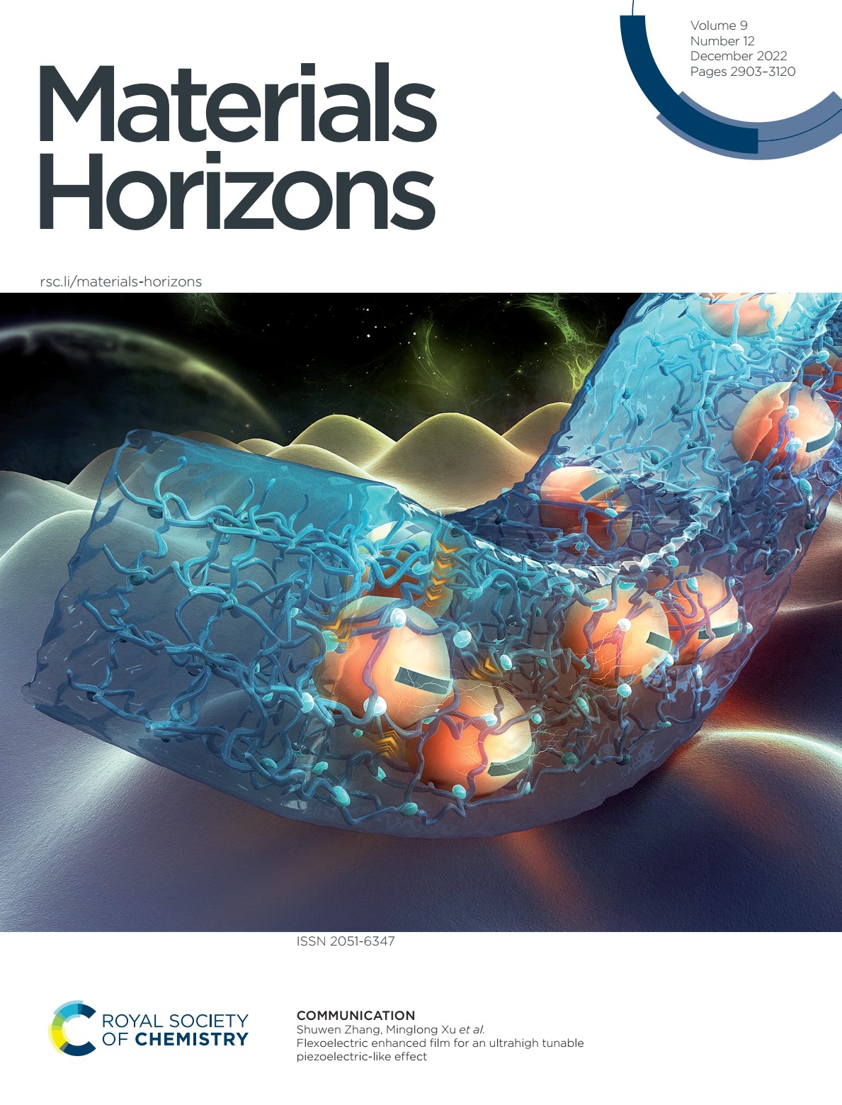 上述研究成果以“Flexoelectric enhanced film for an ultrahigh tunable piezoelectric-like effect”为题,近日发表在工程技术领域权威期刊《Materials Horizons》(IF=15.717)(2022, 9, 2976-2983)上,并被选为2022年第12期封面论文;论文的第一作者为麻豆app