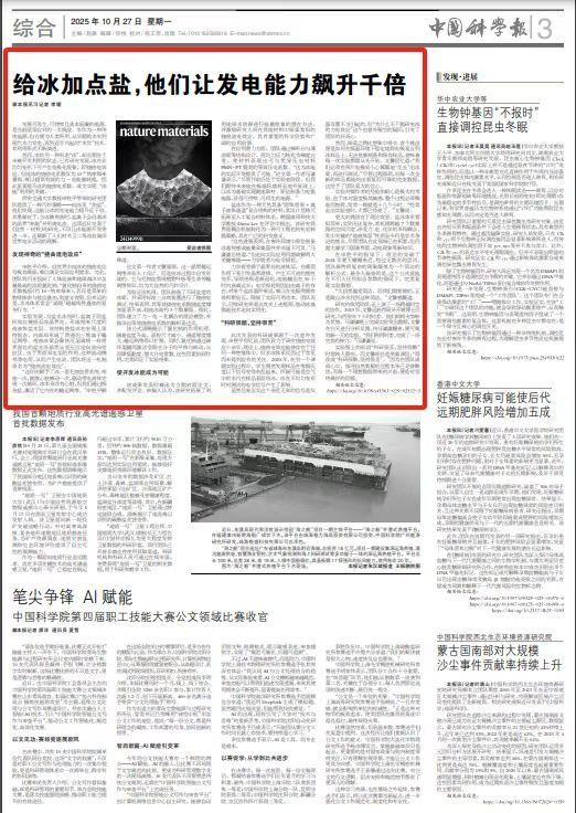 盐冰作为一种天然具备“固体骨架+离子液体通道”复合结构的材料,其设计思路可拓展至人工复合材料体系。韩国浦项科技大学教授Daesu Lee在评论中指出,该研究将界面耦合机制转化为一种可工程化的机电转换策略,具有广泛的启发意义。